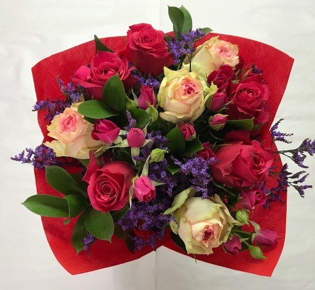 Our "Emotional" Valentine's Day Fundraising Bouquets is a beautiful, classic Valentine's Day Rose bouquet! Our "Emotional" Valentine's Day Farm bouquets highlight the highest quality seasonal flowers available at an incredible price!  As a true "farm bouquet", the actual flower colors and varieties (or recipe) in these bouquets can change based on availability - we cannot guarantee the exact mix of flowers in each bouquet. We estimate that at 30% of these bouquets will be made up of traditional Valentine's color flowers; the remainder of the box will contain an assortment of colors. Our "Emotional" Valentine's Day Bouquet will contain 20 stems of the absolute BEST "Growers Choice" premium, farm fresh flowers and greens, arranged by hand by flower professionals, ensuring they will look great right out of the box! These bouquets are simply stunning - you absolutely will not be disappointed with this choice! We guarantee it!
